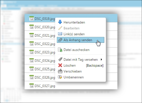 Mit nur einem Klick können Sie gespeicherte Dokumente/Dateien an eine Mail anhängen. Online. Keine umständliches zwischenspeichern oder dergleichen mehr.
